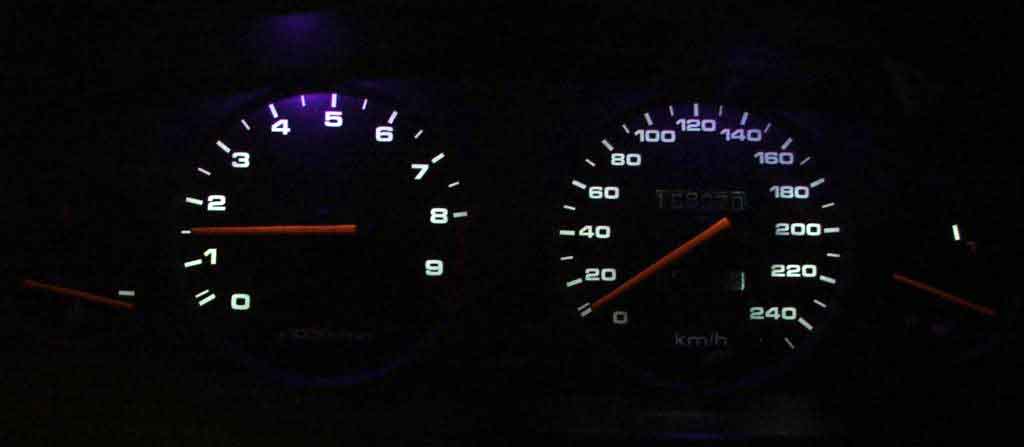 Я ж тебе говорю - подсветка сверху красным и все!!! Никакого волшебства!!! И мошенства!!!))))) Хочешь что бы светились сами стрелки - выдирай из другой машины, монтируй их как-нибудь себе в приборку и чеши еще репу как их в торец подсветить. Тому как штатно не предусмотрено, боярин