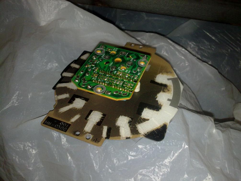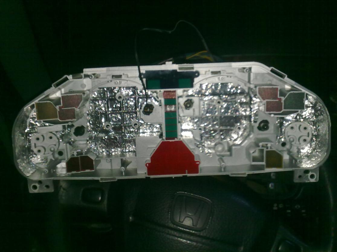 надо было 4 светодиода ставить, чтоб все приборы подсвечивались. тож так сделал уже давно только у меня еще стрелки светятся только тускло, потому что сделал из красного орг стекла(надо было из прозрачного делать)