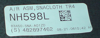 Honda 83450-SNA-A01-ZD Armlehne kpl. nh598l 10 131,63 $