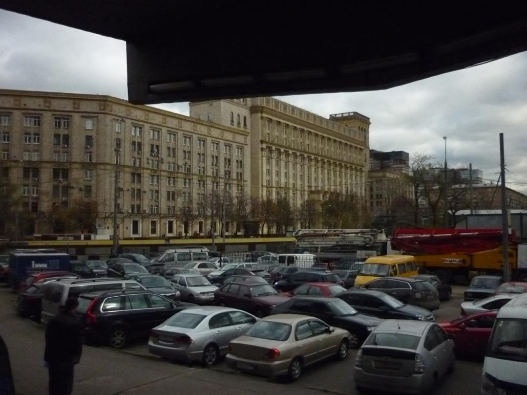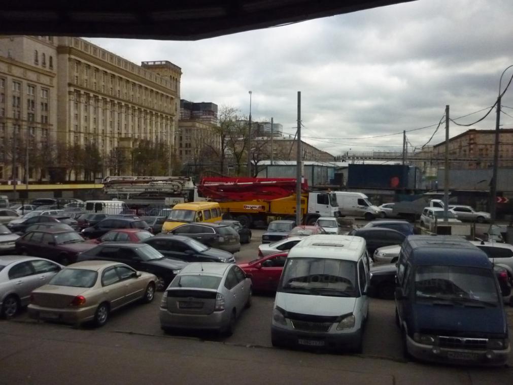 выезд со стоянки только один, если смотреть на синюю будку портера, за кабиной виднеется черная волга, вот за ней выезд. Народу порой приходится парковаться на 2 места, т.к на одно парковочное место бывает просто анреал парконуться нормально, сами видите как все натырканы. А что творится когда кому-то нужно выехать днем из правого угла, пятнашки прям.