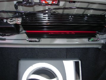 Чем же это компенсируется? Прежде всего, как говорилось - высочайшим к.п.д. Во-вторых - тем, что весь звук излучается через тоннель, а динамик полностью закрыт. При компоновке такого сабвуфера открываются немалые возможности для установки его в автомобиль. Достаточно найти небольшое местечко на стыке багажника и салона, где может разместиться жерло тоннеля - и путь мощнейшим басам открыт. Специально для таких установок фирма JLAudio, например, выпускает гибкие пластмассовые рукава-тоннели, которыми она предлагает соединять выход сабвуфера с салоном. Вроде шланга пылесоса, только толще и жестче.
