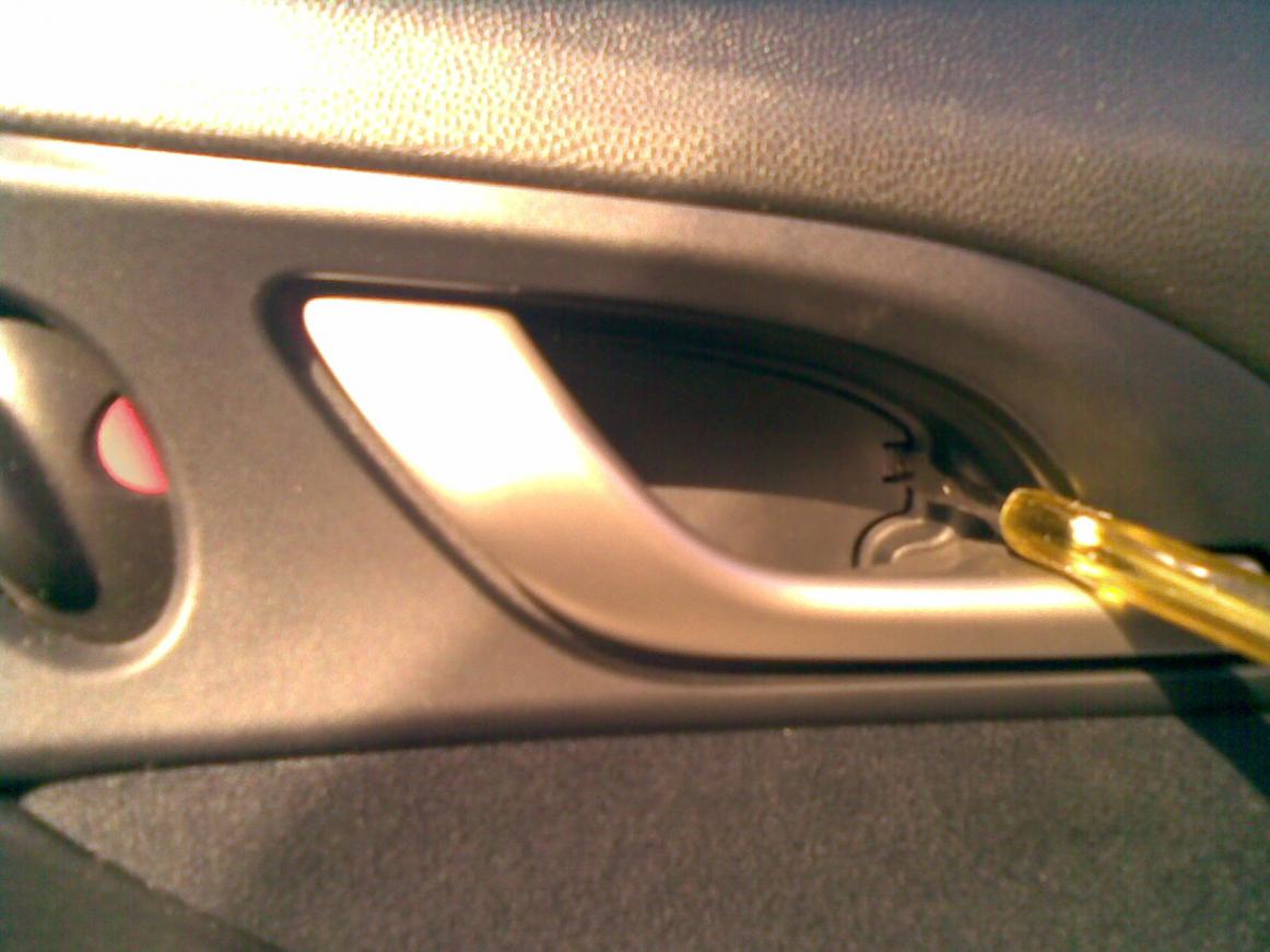 смори, фотки по порядку.1) сначала аккуратно снимаем заглужку за внутренней ручкой открывания двери, откручиваем оттуда 2 самореза.