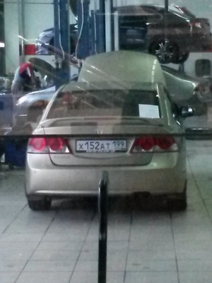 Только что перед поворотом на Чехов в сторону Троицка, по правой полосе меня обошел белый весь в наклейках и со спойлером.