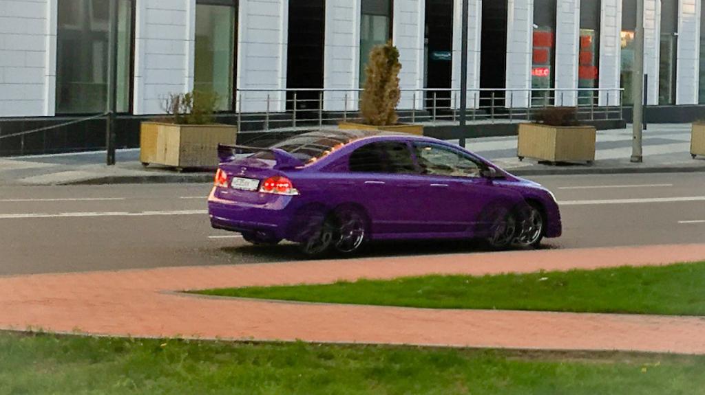 Восьмиколесное фиолетовое чудо-юдо на рамках пару дней назад на м.Водный стадион. Привет от пилота серебристого стелс седана седьмого поколения, если в теме! Номера не разглядел. Сегодня похожего видел, но без рамок и без лавки.