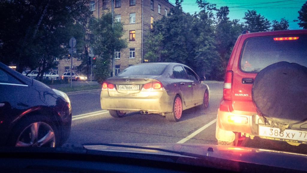 позавчера около 19-00 на выезде из Москвы толкались рядом с черным седаном номер 445 199 с клубной наклейкой на попе.