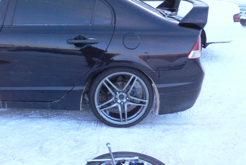Ребят, пипец!!! Зачем вам на "овощном" двигле при нешироких крыльях такие "лапти"?Ну я понимаю диаметр диска, а 8,5-9J полки с ахтунговым типоразмером "рези" нах... нужны?!