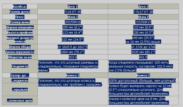 1. менее "интересно" смотрится относительно сравниваемого типоразмера 215/45/17, из-за большей серии (профиля) покрышки (101 мм VS. 97мм).