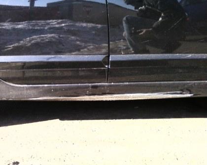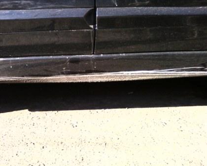 .... Здравствуйте! У меня точно такая же проблема. Выглядит точно так же, как у коллеги, но по длине вмятина-царапина только под задней правой дверью.