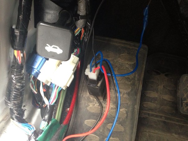 Обычная проводка - 4 провода идут к реле. Делаем по схеме в ссылке выше - 2 из них замыкаем и вставляем в разъем мультиплексора +12в, еще один в разъём мультиплексора 0в, и последний в разъем с педалями. Кнопка вообще не нужна.