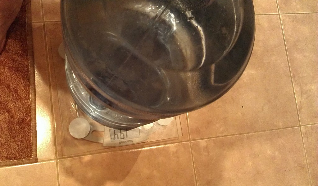 Для того, чтобы убедиться в верности показаний весов, ставим на них полный 19 литровый балон с водой (фото 1)