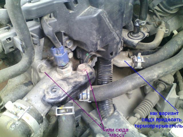 Сегодня примерил как всё установить. В принципе всё так как я и рисовал ранее, только свечи будут смотреть в бок (горизонтально, рис.1). Расположенна система будет под держателем, приделанная к металлическому кронштейну стяжками или ещё чем-нибудь (рис.2). К болту крепления кронштейна можно прикрутить клемму провода массы, вторую клему зажать в соединении фитинга и свечи. Датчик температуры можно закрепить на отливе откуда выходит подача в печку (рис.3). Силовое реле можно разместить на кронштейне штатной проводке идущей в блок предохранителей (рис.4,5). Там же нарисовано как можно пропустить силовой провод до плючовой клемы. За все фитинги (рис.5) отдал 300р. Переходник на резьбу 1\4 есть далеко не везде и был только такой (кстати во многих местах его знают как переходник "под манометр"). Вкручивал свечу туда - закручивается слишком легко, фум-ленты туда побольше надо будет. Переходник под шланг взял на 18мм (шланг не снимал пока, но известно что он 24мм, а толщина стенок на вид 3мм). Фитинги-тройники везде разные и по размеру разные. Я брал самые маленькие которые нашел. В них хорошо по размеру свеча FG9005 (от нагревательного элемента до конца резьбы 37мм), рабочий ток 14А, контакт с гайкой. Фитинги есть немного выше моего (или например если использовать переходник на 1/4 из предыдущих картинок), туда уже можно взять свечу FG9008 (то же расстояние на 5мм больше) она будет на 18А - по идее греть будет быстрее (кстати эта свеча аналог от дизельного уазика, думаю с наличаем в магазинах будет всё нормально). Я заказал пару FG9005, в среду будут