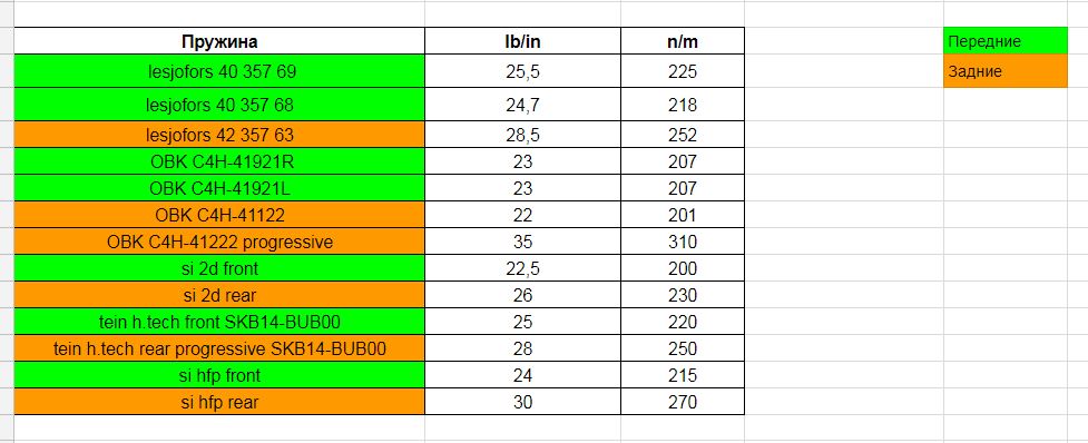 жесткость пружин, инфа от производителей.