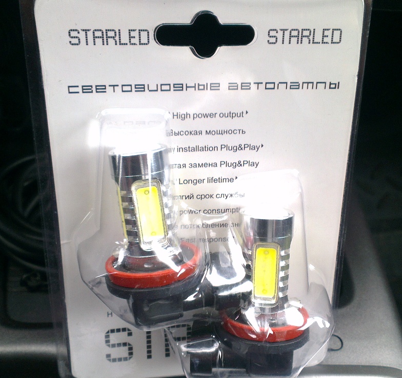 Иллюстрирую фотами. На первой - лампы, которые я установил и рядом родные лампы Н11.