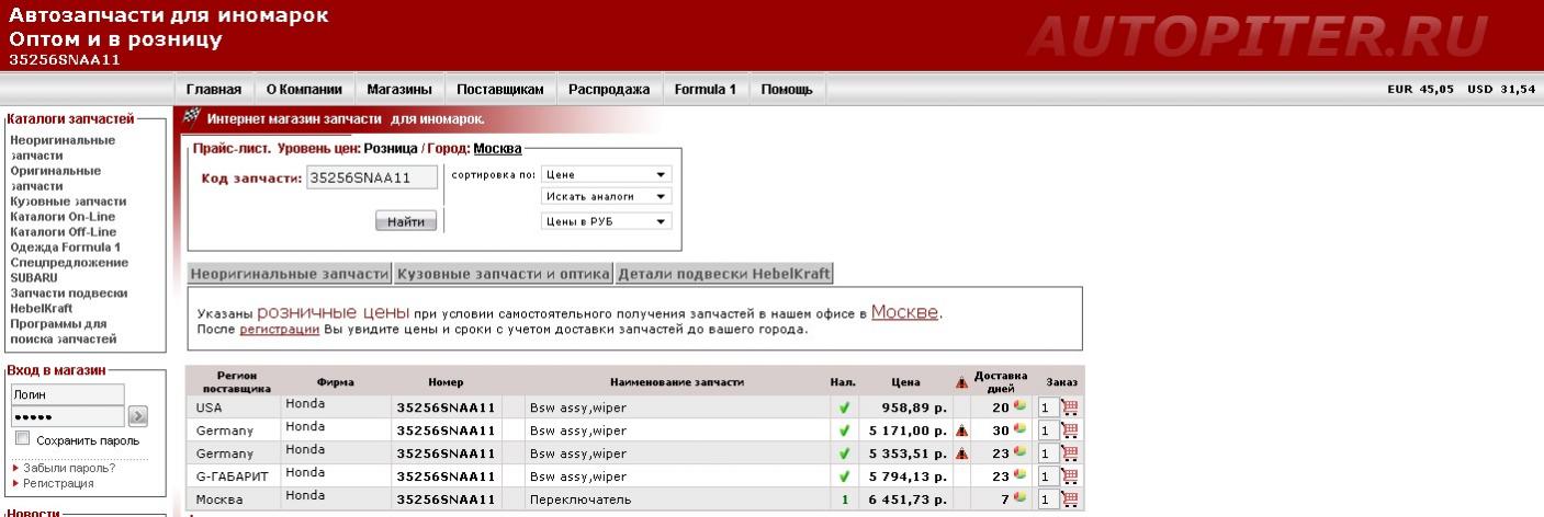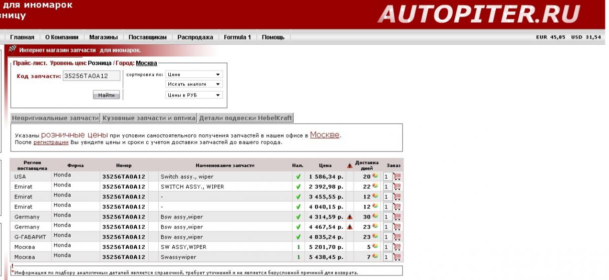 заказал себе переключатель 35256SNAA11 в автопитере.........счет прислали быстро, оплатил 951р 51коп.............................сижу жду