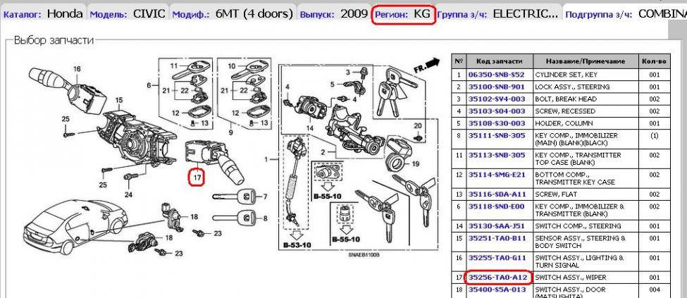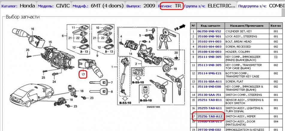 во первых что для турки (TR), что для германии (KG) номер выбрасывает один и тот же: 35256TA0A12, и в ценнике 1586 р..... но и 35256SNAA11 я думаю ничем не отличается, только лишь дешевле - 958 р. я такой заказывал и устанавливал, у меня правда 2007, но 100% уверен, что должен и на 2009 подойти.... в крайнем случае у манагеров в нэт-магазе можно спросить.