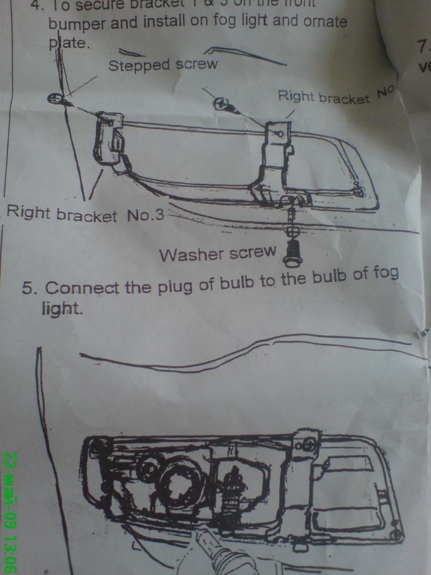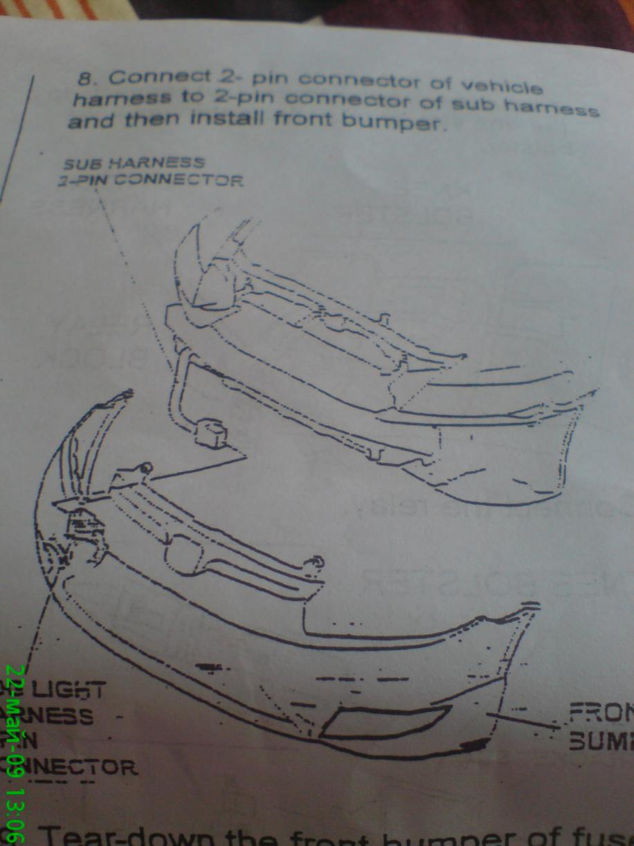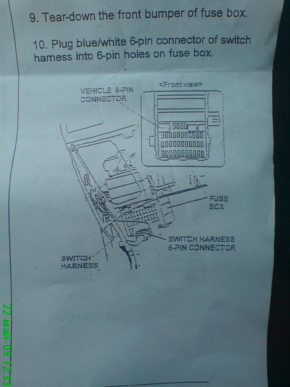 .Если в комплекте с туманками была вся проводка то В блоке управления предохранителей который находиться в салоне есть специальное гнездо под белый котектор он там один свободный но он у меня был голубоватый втыкаем туда и еще предохранитель должен тожь быть на 20А его ставим во второй ряд с верху 5 по счету слева.на рулевой рейке изолентой прикручина фишка она коричневая с синим проводом а другой конец под бачком омывтеля тоже коричнивая с синим проводом.Схему найду скину. да и фото куда что втыкать