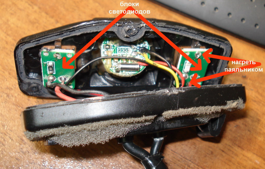 3. изучаем общее состояние камеры. находим блоки LED-подсветки. Паяльником с острым жалом расплавляем крепеж и снимаем нужный блок для ремонта.
