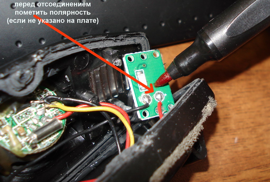 4. отпаиваем блок подсветки предварительно пометив полярность.