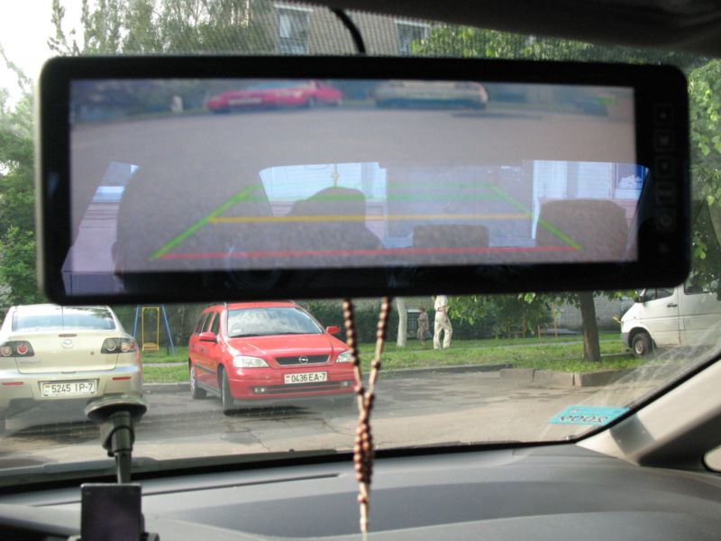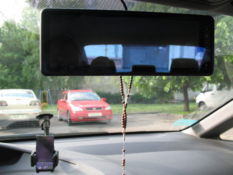 ну наконец-то дошли руки установить и подключить комплект с ebay 2 камеры и зеркало-монитор. Зеркало особо никуда всунуть не смог, здоровая слишком тушкаТак что воткну куда рекомендует производитель, т.е. поверх штатного. Именно как зеркало свою функцию оправдывает только при включенной задней камере
