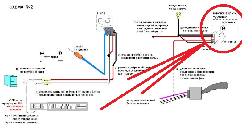 Читай первый пост и делай по схеме 2, если хочешь, чтоб контролька на панели горела. Третья фотка - блок предохранителей, куда подключаться, четвёртая- фиолетовый провод на штекере подрулевого переключателя. Схема №1 - подключение без контрольки на панели.