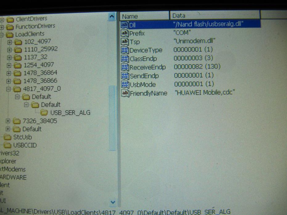 с путем "Dll"="\Nand flash\usbseralg.dll" щас попробую разобраться