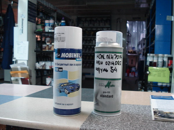 на фото родная подкраска с номером и 2 баллона - один это бесцветный лак, второй - краска изготовленная по номеру, грунт не фотал но если надо то могу сделать завтра.