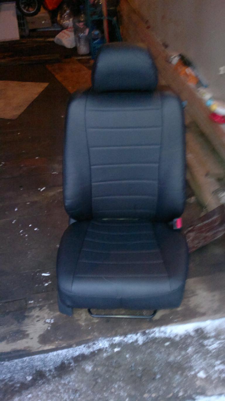 Вообщем,купил я чехлы еще где то в октябре-ноябре прошлого года,сразу не поставил потом холода пришли.В итоге вчера в гараже с другом натянули чехлы. В целом мне понравилось машинка приобразилась изнутри.Совсем другой вид.Теперь хочу переделать двери.Много тут писали про то что надо ли отключать массу или нет,я отключал.Впринципе ничего сложного нет но лучше это делать вдвоем.Все делали как описано в первом посте,тянули изо всех сил порой.Вот некоторые фотки того что получилось правда фоткал на мобилу.
