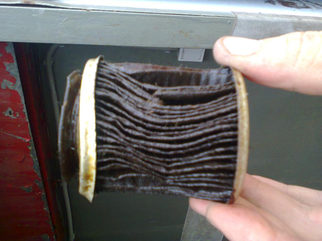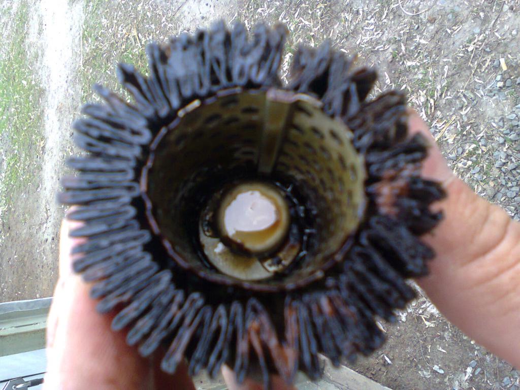 Распилил и в перепускном клапане щель. Бумага не полностью была приклеена к торцам..всё косо и криво.