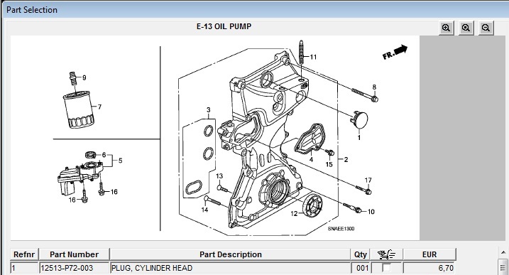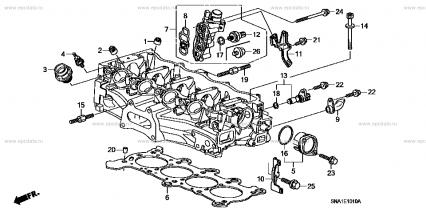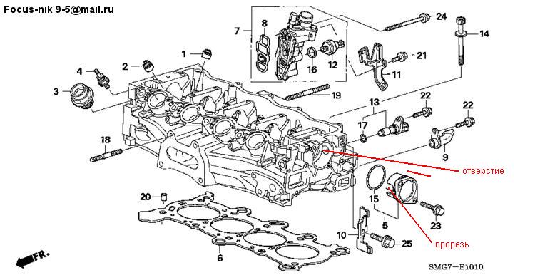 И тогда еще вот картинка, где позиция 1 и есть та заглушка 12513-P72-003 с передней стороны двигателя, откуда часто сопливит масло