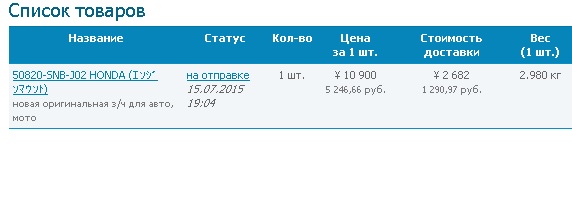 30.07.2015 - Уссурийск - Груз прибыл в филиал