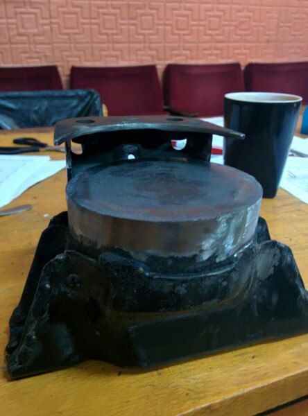 Тот кто разбирал порваную хондовскую подушку, наверное видели этот алюминиевый конус ввареный в резину, там площадь опоры чень маленькая, если бы диаметр основания конуса был бы миллиметров 50 то подушка ходила бы намного дольше. У лемфёрдера такого недостатка нет.