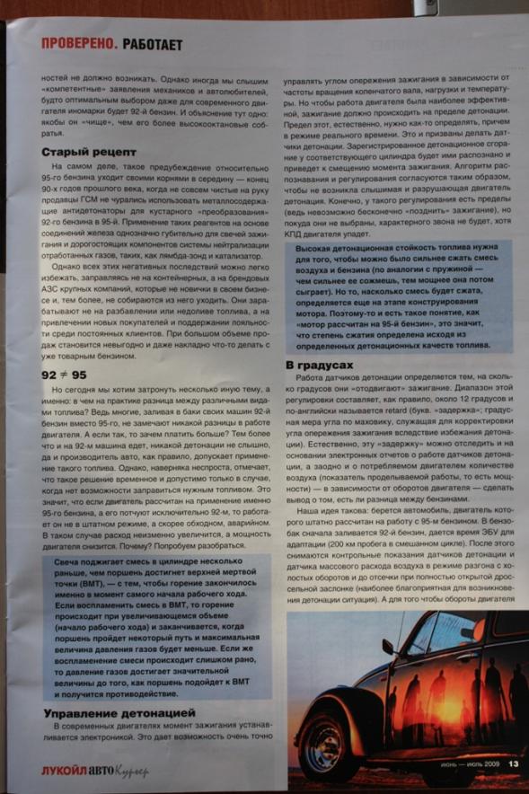 Про диапазон адаптации в 12 градусов тоже улыбнуло, может есть такие очень скромные ЭБУ, что сомнительно, но реально диапазон адаптации угла порядка 20 градусов. Возьмите хотя бы характеристики любого октан-корректора. Поэтому и вывод в статейке, что 92-й это крайнее ОЧ адаптации не правильный. На это указывает и мануал сивки, из которого следует что двигатель способен работать на 88-ом ОЧИ. И уж наверняка присутствует некоторый запас. Хотя бы погрешность метода определения ОЧИ составляет 1 ОЧ.