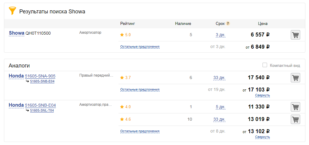 Стойки SHOWA арт. QH0T110500 в емекс кто нибудь в курсе что за showa за 6500 руб.?