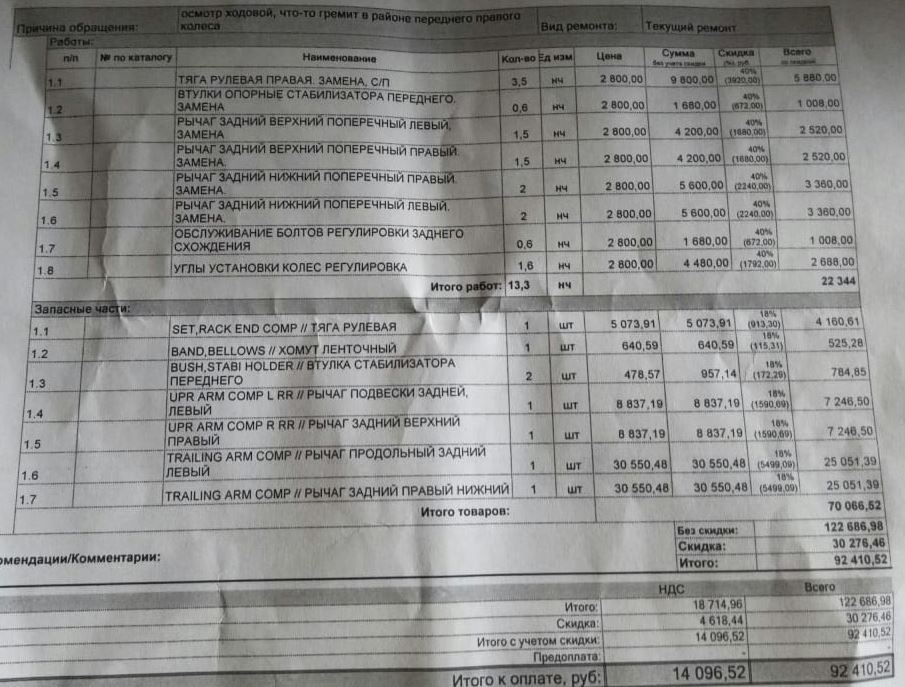 + после замены потребуется регулировку углов установки колес (сход/развал)