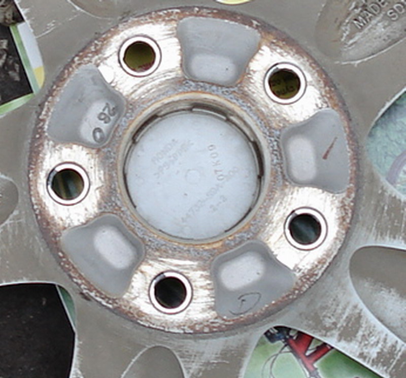Сначала необходимо убедится, что диск штатный. На каждом литом диске указываются производитель, каталожный номер и основные параметры, в том числе DIA - диаметр центрального отверстия, PCD - диаметр окружности центров отверстий колёсного диска. Если штатный, то сфотканое кольцо могло его повредить.