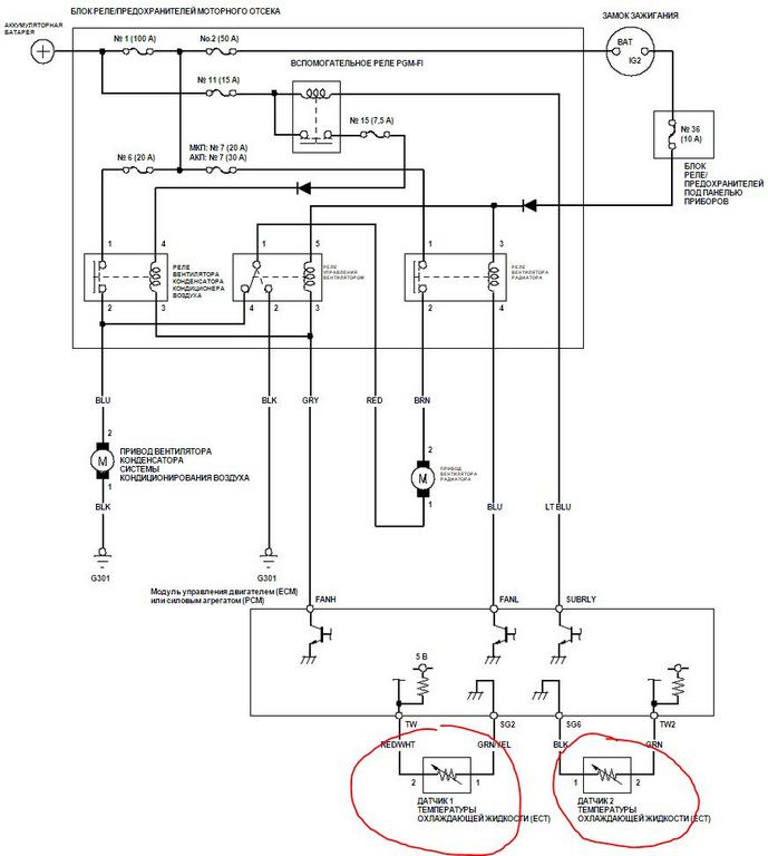 Сигнал о температуре "мозг" получает от датчика температуры в нижней части радиатора и от датчика в водяной помпе, может проблема в одном из них?
