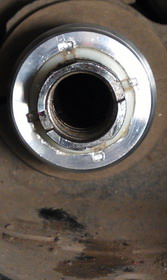 В местах кернения втулку сточил надфилем до высоты 5,5 мм. и в этих местах снаружи спилил грань – фаску под 45 градусов – место для наплыва алюминия после кернения.