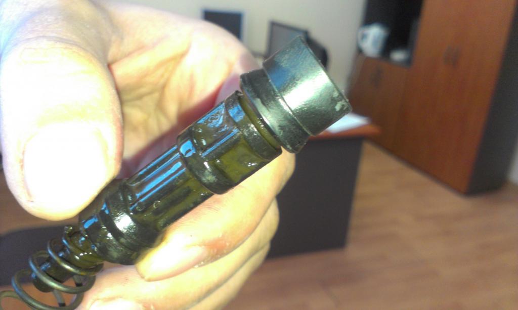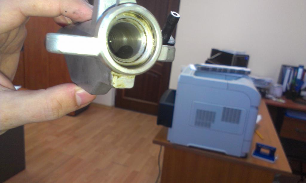 Серая пятно внутри цилиндра - это и есть место износа, через которую и пропустил манжет жидкость за себя, входе чего не создовалось нужное давление и тем самым не была возможности для переключения передач.