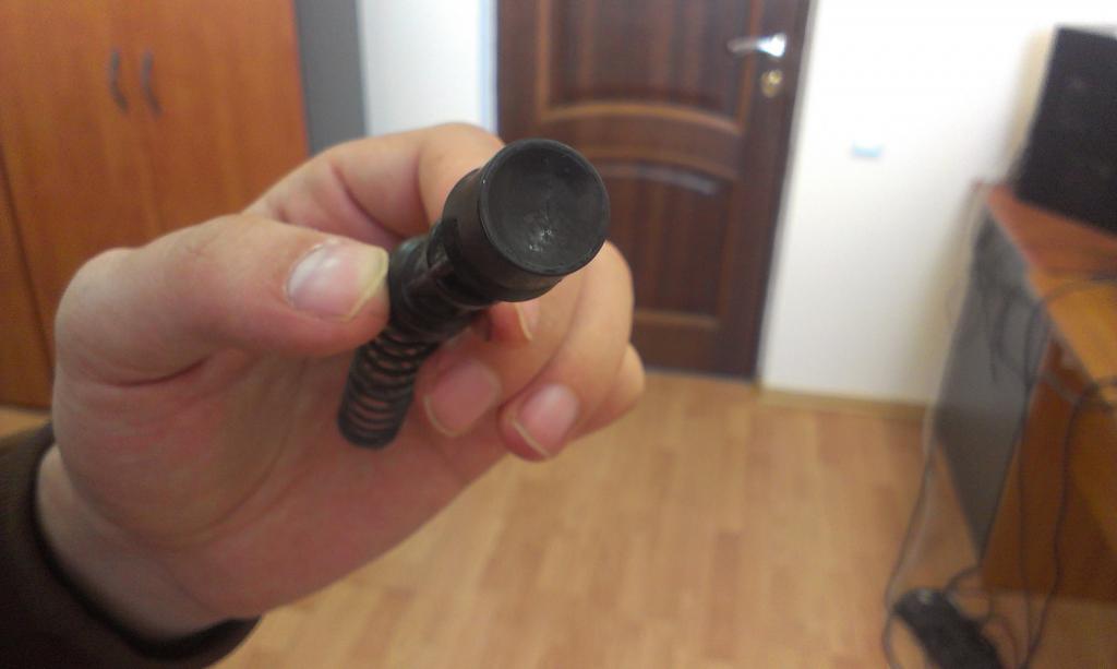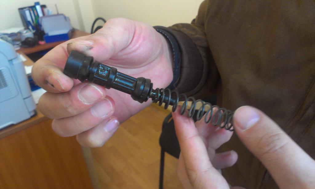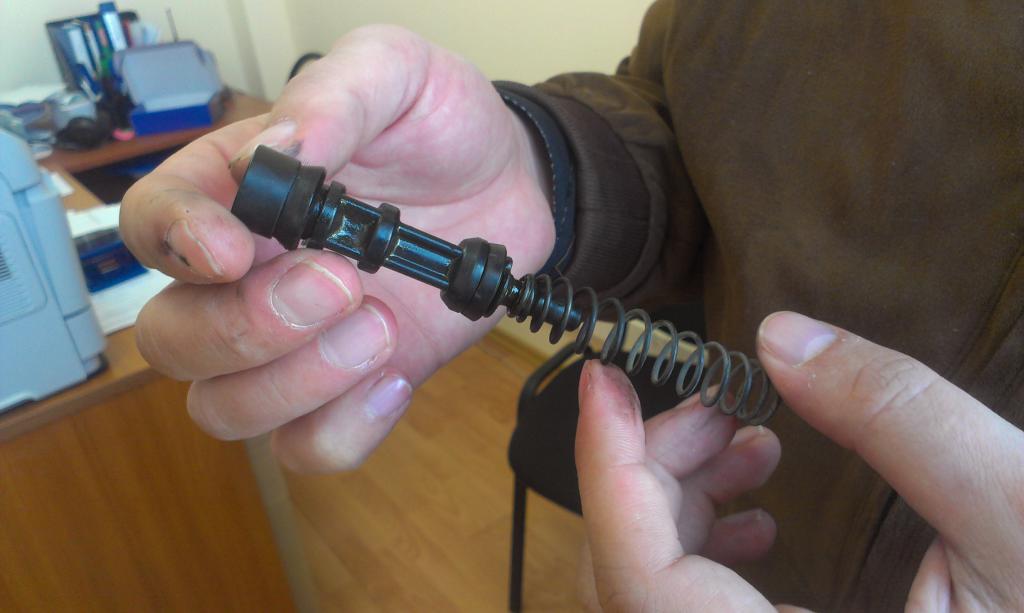 у меня пока не скрипит, но все же если вдруг... я решил попробовать повернуть толкатель на 180 градусов, если там вырабатывается одна сторона - а это видно из приложенных здесь рядом фоток, дак пусть поработает другая...