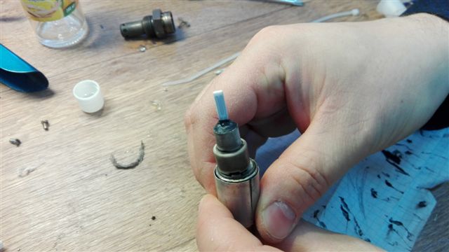 Кстати сам прямоугольный чувствительный элемент- (скорее всего от промывочной чачи которую залил в бак) был покрыт в 0.5 мм слоем сажи- только БЕЛОЙ.почистился спичкой, на фото видно что через керамику стало видно спираль нагревателя.