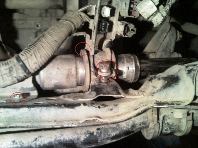 Полностью с обоих сторон открутил задние болты крепления подрамника