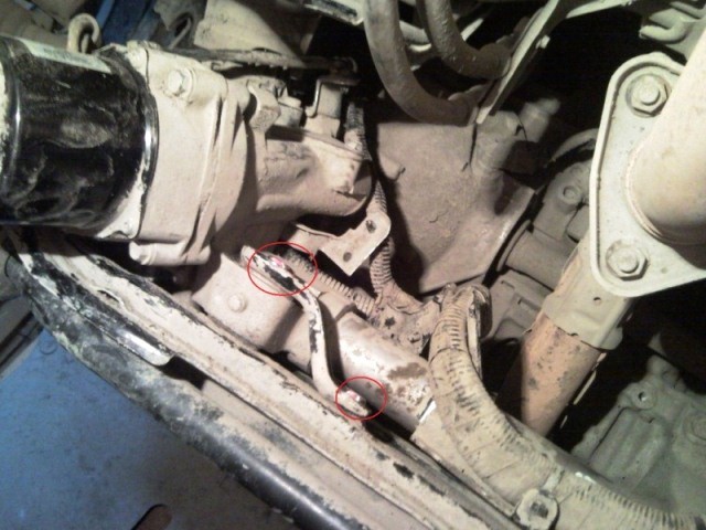 Далее откручиваем болты крепления рейки (с правой стороны) и жгута