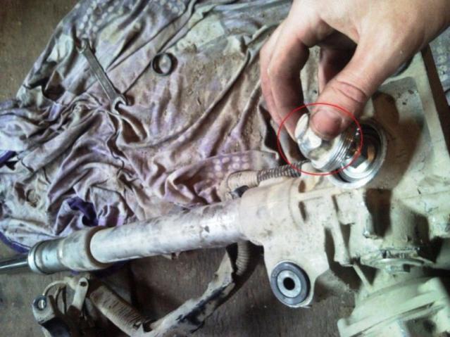 Выкручиваем головкой на 10 болт (сильно затянут), ослабляем рулевую колонку и тянем руль на себя (изночально руль должен быть в максимальном положении от себя) креставина должна слезть с рейки