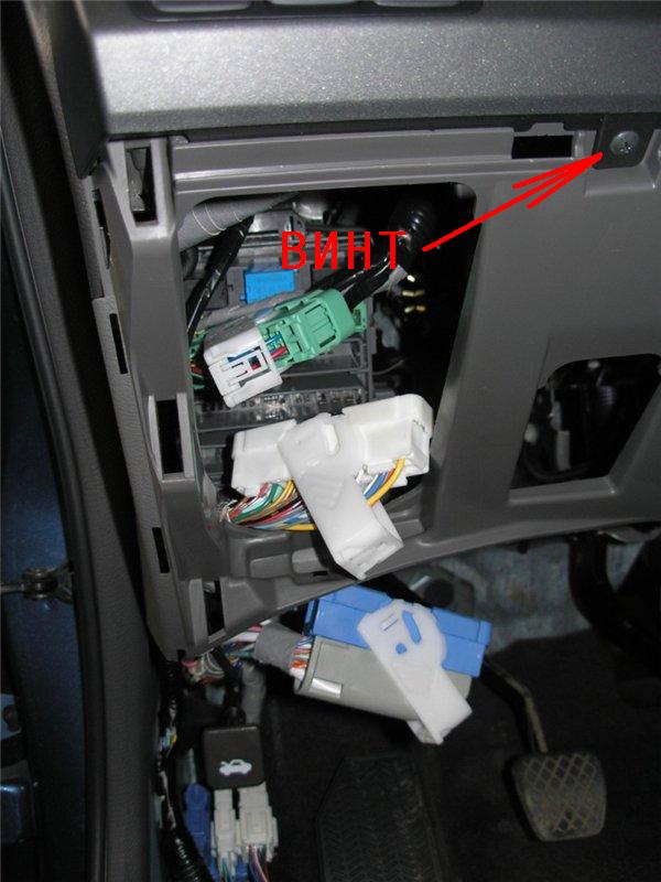 А да, извиняюсь, забыл совсем.. я свою штатную магнитолу выбросил после полугода, как купил машину, а после этого раз пять-шесть снимал уже без этих двух болтиков, поэтому забыл... В общем так..., в кармане, сверху, около прикуривателя находится крышечка, она сидит на двух защёлках, поддеваешь аккуратненько поочереди в утоплениях (нащупаешь) вниз и вытягиваешь на себя. Далее пошарь в этой дырке пальцами сверху, там нащупаешь два винта М6, под ключ на 10, я их откручивал, насколько помню, ВАЗ-овской трубкой 8 - 10... Даааа ещё вспомнил... здесь мануалы в PDF, для тебя вот этот, только там лишнее разбирают со стороны пассажира... ну, разберёшься...