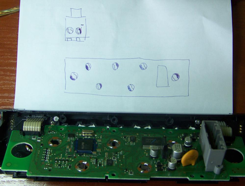 Вкорячил в злополучные места светодиоды с резисторами, пришлось залудить медные площадки для "подсвешников", но зато ни каких больше ударов по панели + возможность поиграться с цветом, не банально белым, а синие людишки например на климате...
