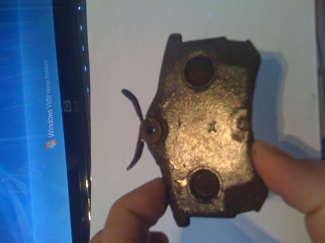 Посмотрите внимательно на фото, царапины на тыльной стороне, то есть в эту часть давит элемент суппорта, а колодка лежит на ферадо, или колодка была ПЕРЕВЁРНУТА в суппорте, тогда ваще жесть.