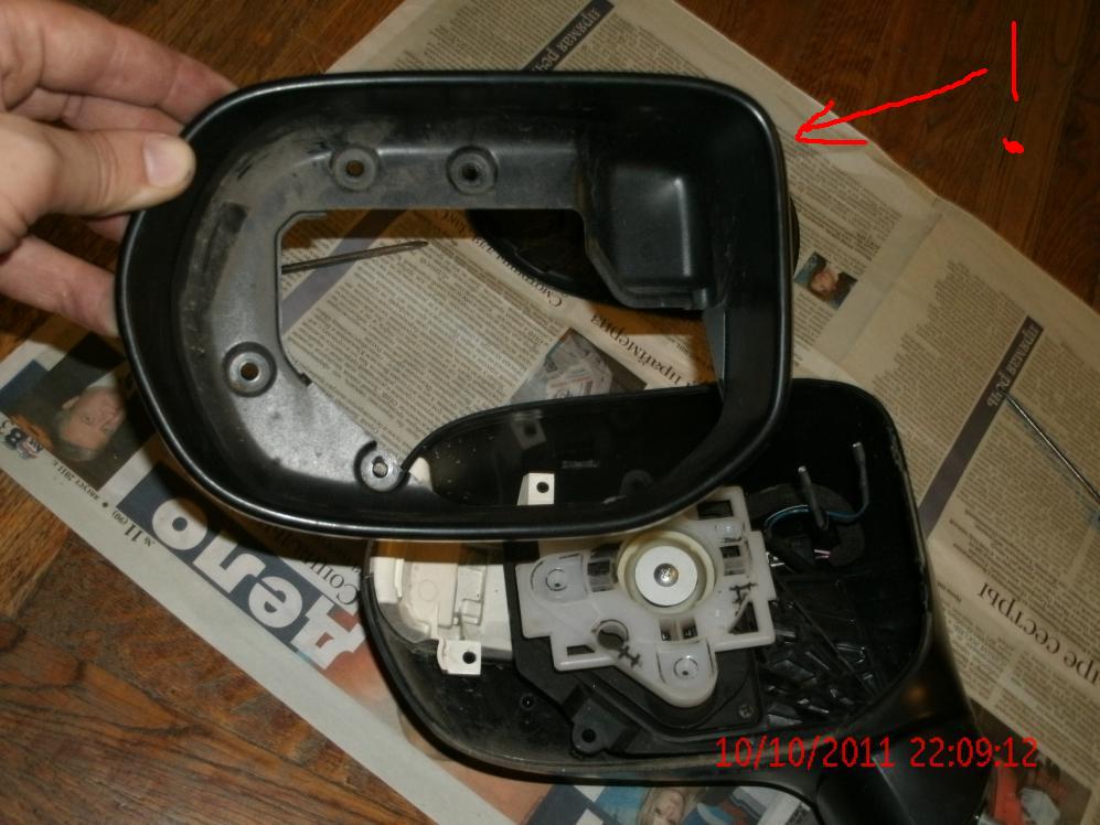 еще раз для тех кто хочет снять зеркальный элемент и упорно ищет винты... их там нет и ничего откручивать не надо! само зеркало держится на 4х защелках и липкой субстанции...да, лучше греть зеркало, треснуть его - раз плюнуь
