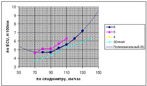 Ого. А я не один занимаюсь этой ерундой. Присовокупляю к твоим свои измерения (см. рисунок). Все аналогично, только вместо круиза дрожащая от напряжения нога и скорость, естественно плавает в пределах +- 2 км/час.