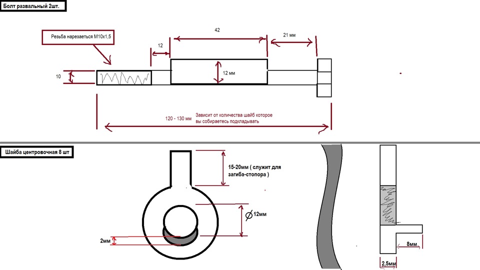 Сделали мне по тем чертежам развальные болты...и я их уже установил...В пятницу только поеду на развал-схождение..Правда развальщик такую регулировку ещё не делал....Если всё отрегулируется как надо,то сделаю фото-отчёт в теме....Болты по заявлению автора регулируют развал от -1,2 до +1,2....но меня больше волнует и зависимое от развала и схождение....сожрало у меня равномерно заднюю резину....Развал попробуем выставить равномерно сл. и справа по -1.30,а схождение вывести в+0.03..,чтобы запас был при загруженном авто....Правильно?...Ещё бы знать как правильно делать регулировку болтами с эксцентриком и центровочной шайбой-маркером....