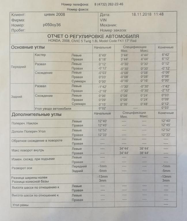 Сход развал делал там же, но делал другой человек. Сзади схождение поправил.